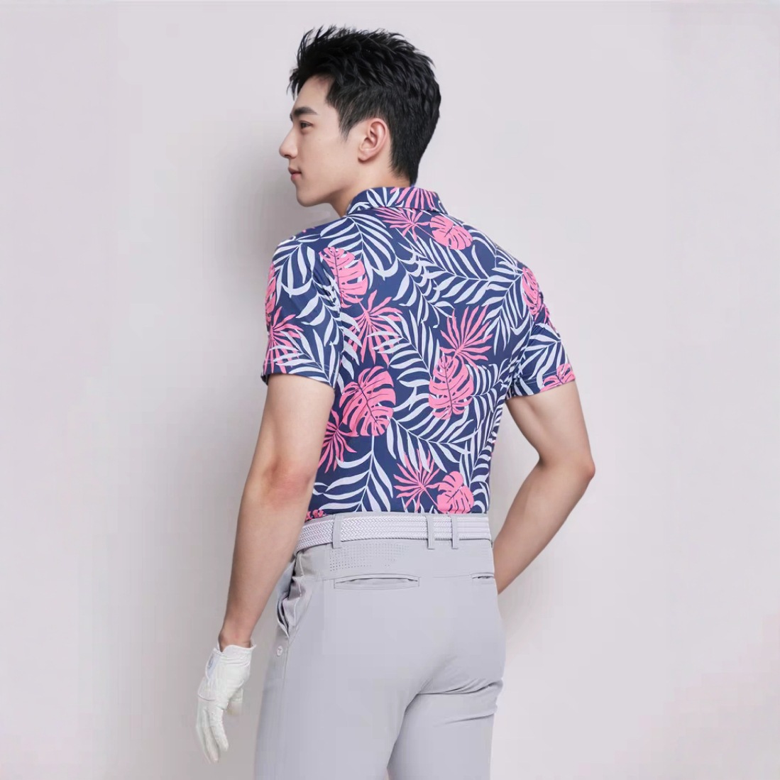 暑い季節のラウンドでも涼しげな印象を与えるゴルフ ウェア メンズのポロシャツです。